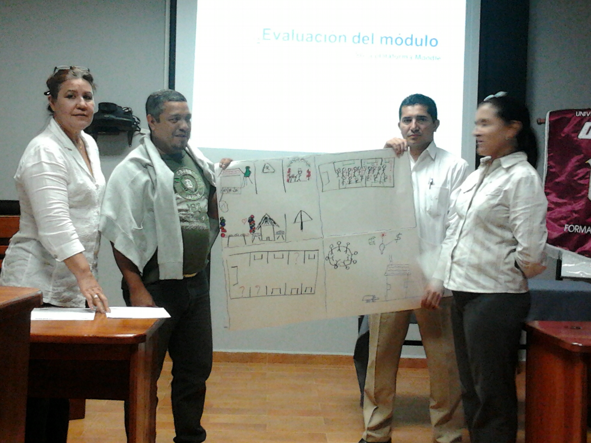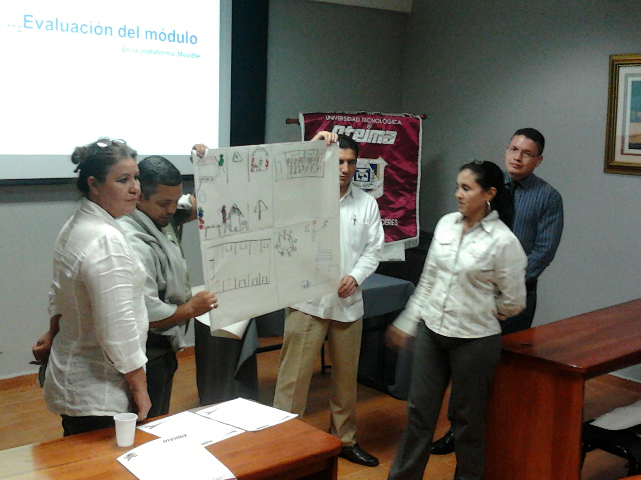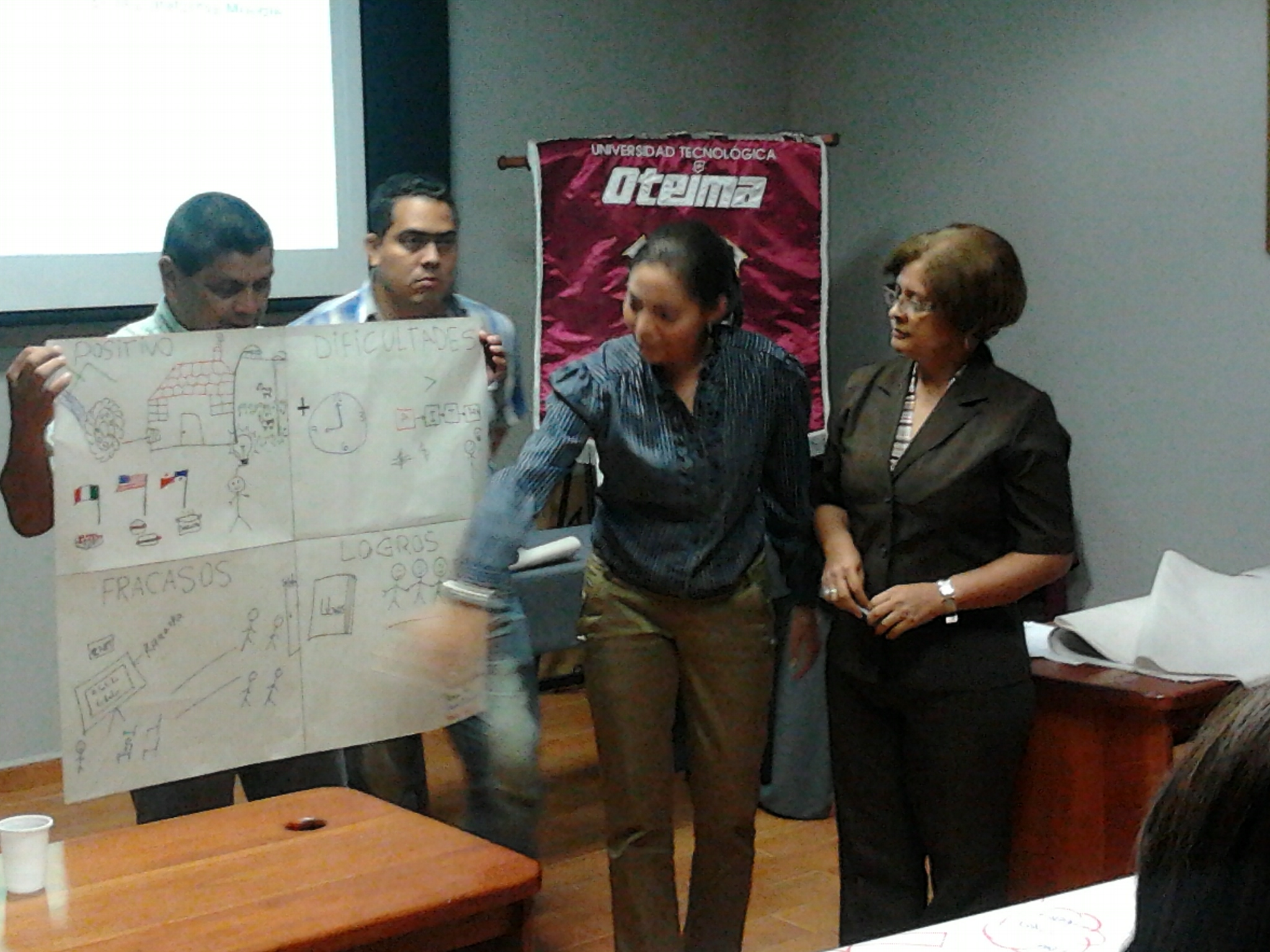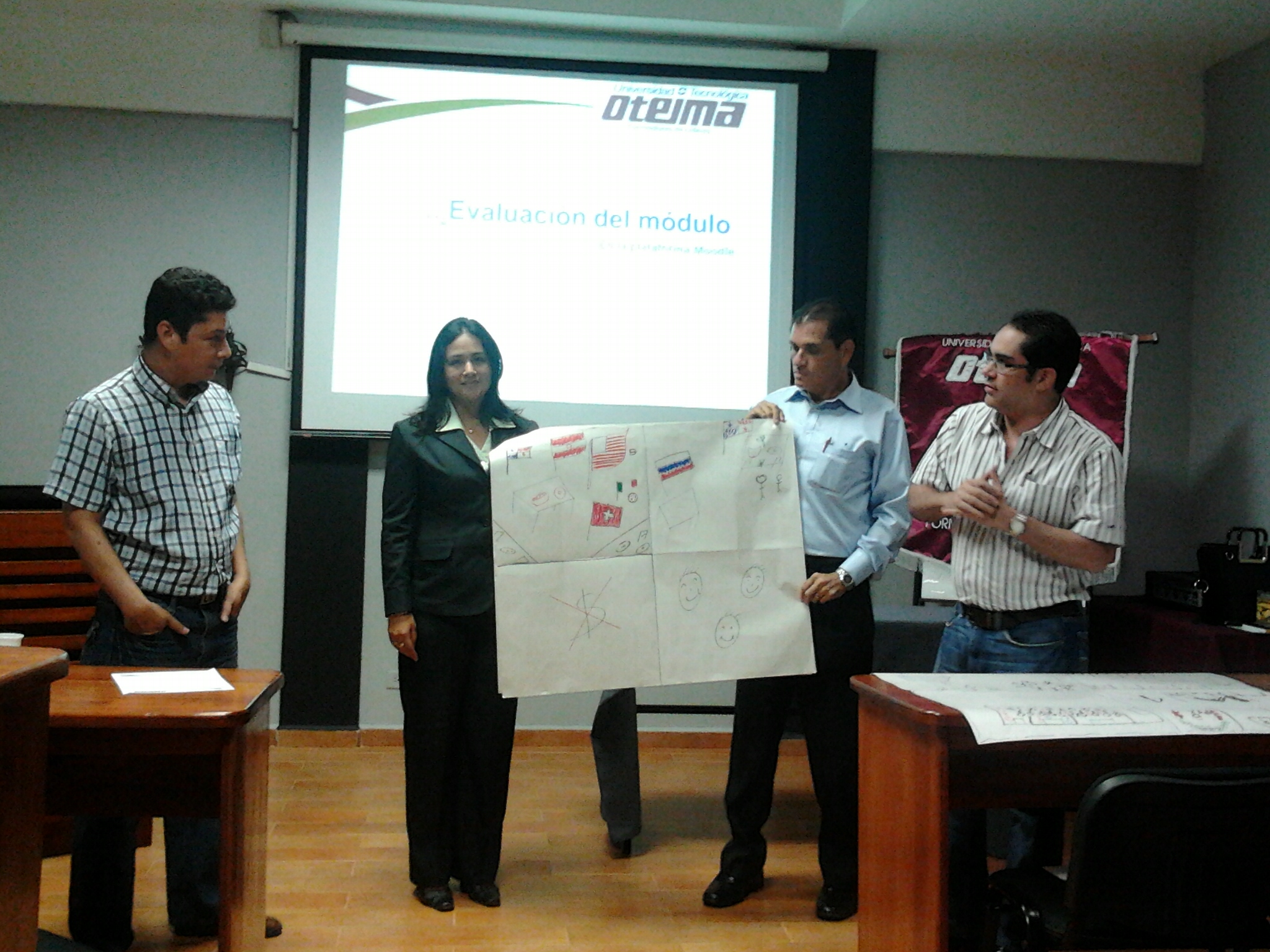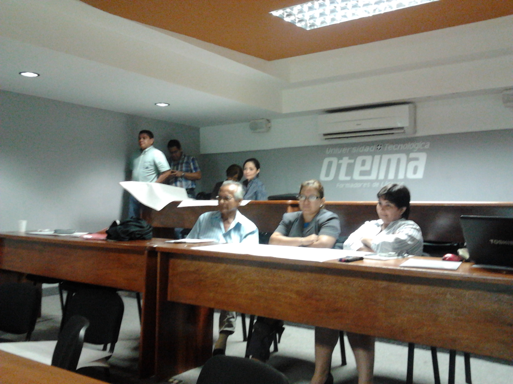 Los profesores de la Universidad Tecnológica Oteima se capacitan a través de los Cursos de Docencia Superior con actualización de 40 horas en temas de institucionalidad universitaria, desarrollo del módulo didáctico, estrategias metodológicas en el aula y plataforma Moodle. Aquí vemos el segundo grupo conformado mientras participan en talleres de trabajo y presentan resultados en la sesión. El segundo curso de Docencia Superior se realiza del 23 de noviembre al 21 de diciembre de 2012, en la Sala de Maestrías y Doctorado El Inmigrante Ideal de la Universidad Tecnológica Oteima.