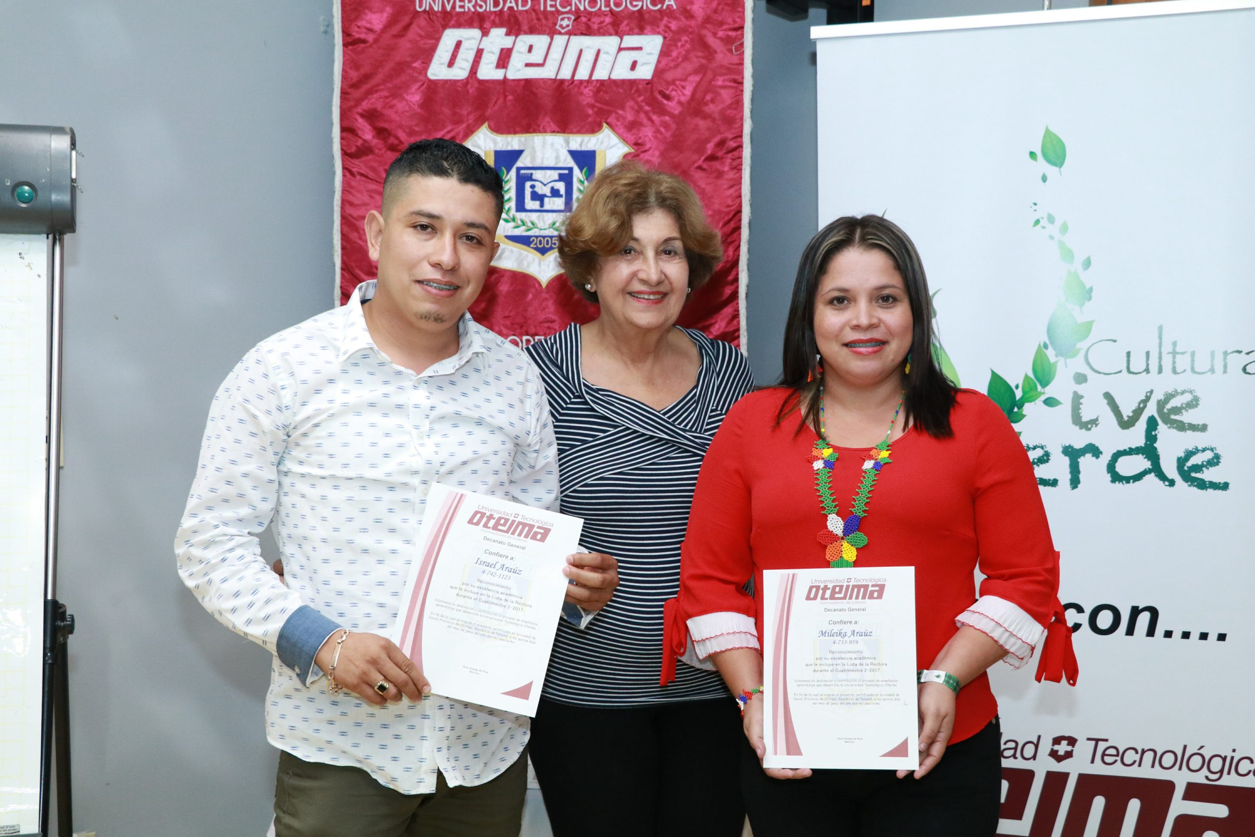 En el marco del evento el patrocinador Fértica y UTO-reconocieron al estudiante- Raul Quiel, como beneficiario de la beca de estudiante por un año más, la misma la entrega el Lcdo. Manuel Donato Jiménez.