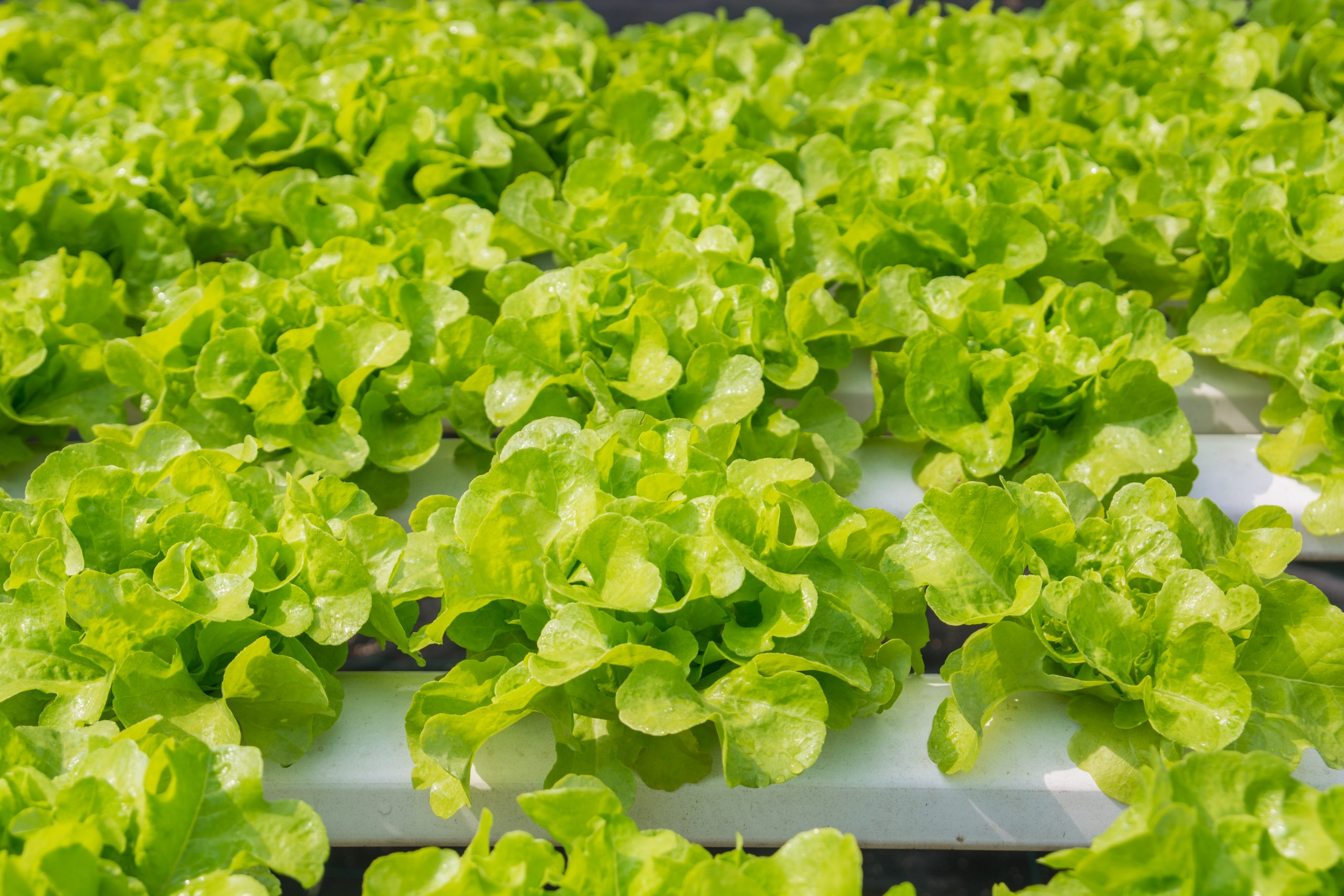- Fresh Green Oak Salad Lettuce Vegetable growing in Plastic Pipe in Hydroponic Organic Agricultural System Farming or Garden Plantation under Morning Sunshine in Asian as Modern Agriculture production