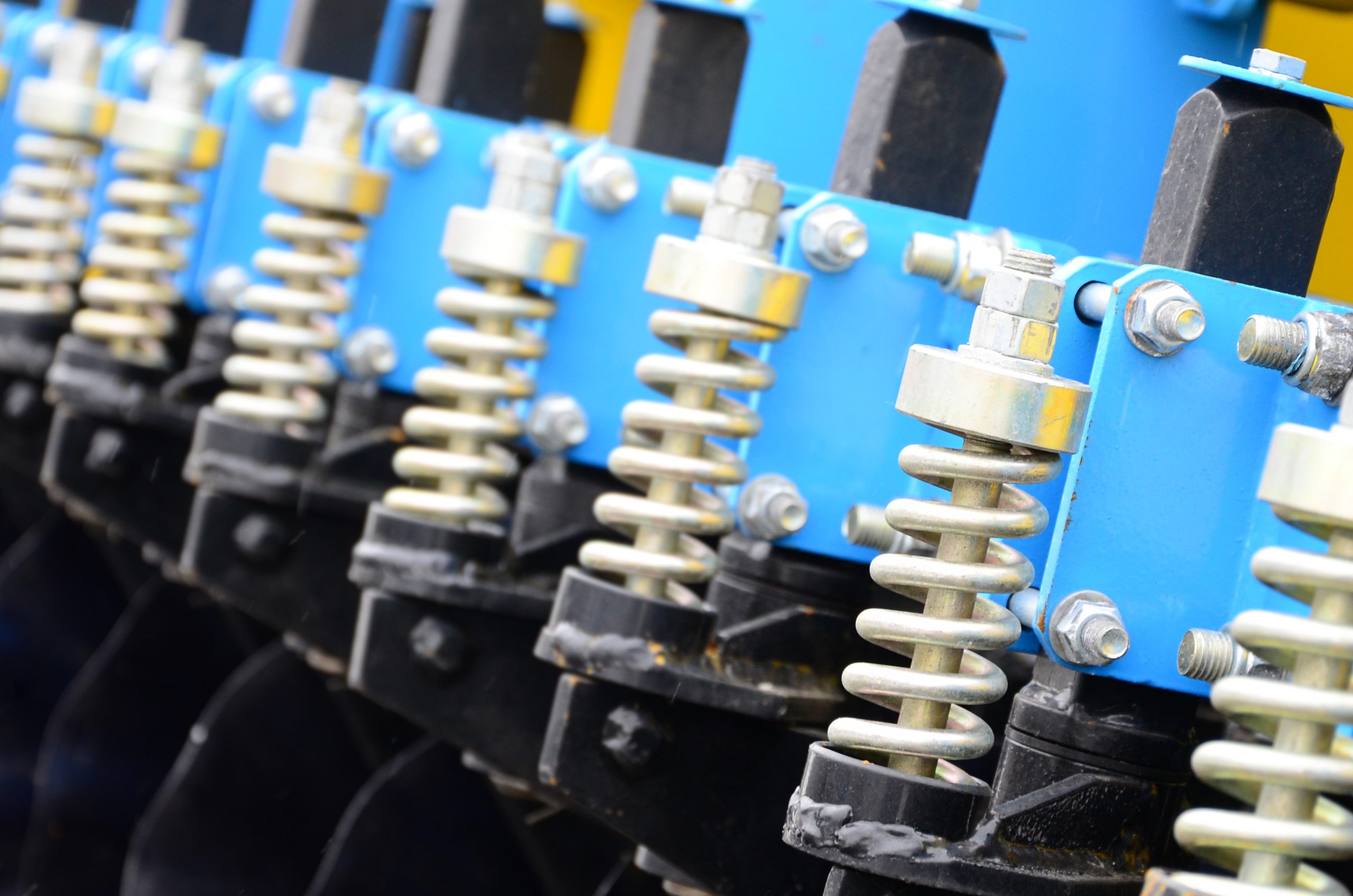 - Spring system of agricultural seeder close up