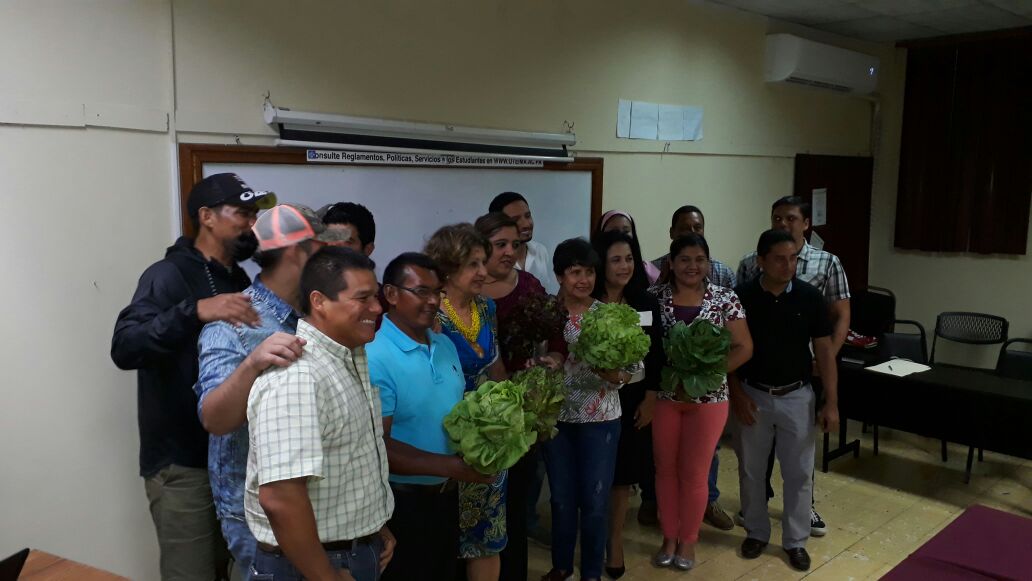 El Lunes 7 de Mayo de 2018 culminó con éxito el Curso “Técnicas de Producción Agrícolas para Áreas Urbanas y Periurbanas del país”dictado por el Ing. Aris Acosta. En el acto de clausura estuvo presente la Rectora de la Universidad Tecnológica Oteima: Nixa Gnaegi de Rios quién incentivó a los participantes a implementar las diversas técnicas de producción que se desarrollaron durante las sesiones, tales como, Hidroponía, Aeroponìa, Geoponía entre otras. En dicha clausura los participantes con diversas profesiones (abogados, Ingenieros civil, Ingenieros Industrial, enfermeras e Ingenieros Agrónomos) elaboraron recetas a partir de productos del huerto, las cuales fueron presentadas y degustadas por todos los invitados. Agradecemos a todos los participantes por su esfuerzo y dedicación.