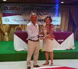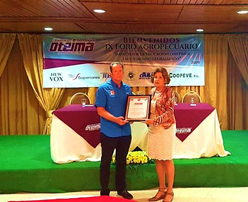 - Don Timothy Charles, de nacionalidad norteamericana, Gerente General de Fertilizantes Superiores, recibe de Doña Nixa la distinción como Inmigrante Ideal. El acto se llevó a cabo durante el IX Foro Internacional Agropecuario, realizado en Santiago de Veraguas.