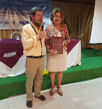 - El Dr. Germán Perilla, Catedrático en la Universidad George Mason, USA, Científico e investigador por más de 30 años sobre Apicultura, recibe el agradecimiento de la Rectora y la entrega de una portaagenda, elaborada de forma artesanal en Veraguas. El Dr. Perilla vino especialmente a participar en el IX Foro Agropecuario. Su Conferencia ¨Situación Mundial de la Apicultura¨ fue realmente magistral y muy valorada por todos los asistentes.