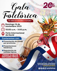 La Universidad Tecnológica OTEIMA te invita a disfrutar de nuestra Gala Folclórica “20 años de historia y futuro”, un evento lleno de color, música y tradición. 📅 Domingo 16 de noviembre de 2025 🕙 10:00 a.m. – 3:00 p.m. 📍 Feria Internacional de David Ven con tu familia y amigos a disfrutar de: ✨ […]